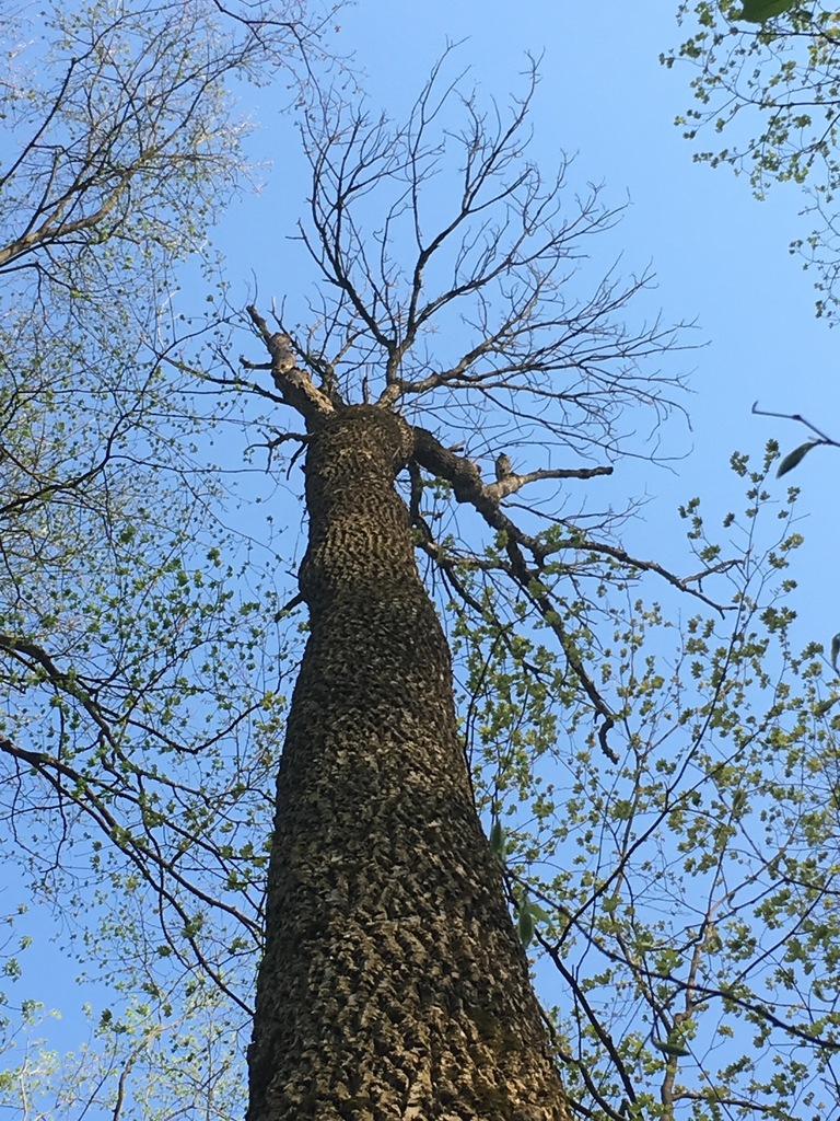 Lastly, I’m far from an expert in tree identification, which is part of the reason I set myself this project. The variation a single species can show over the course of its lifetime is fairly bewildering. Just when you think something is “distinctive,” you find out that another species does that too, or that not all trees of that species display that specific feature. Bark is highly variable based on things like rate of growth, disease, and soil conditions. This is why some people recommend learning twig structure, which does have a fairly precise technical vocabulary. I haven’t jumped into that just yet, but in any case, there’s something satisfying about being able to spot a stand of tulips forty yards away, up on the next ridge.