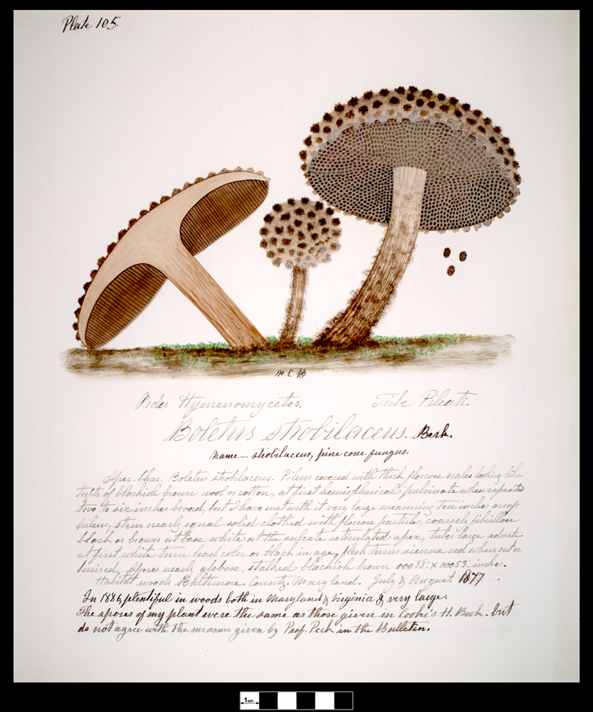 I wish more was known about her life. We know that after her father died (when she was 23) she was responsible for taking care of her mother and chronically ill sister, and that hiking became a release from the stultifying atmosphere of home. We know that although The Fungi of Maryland was never published, she did publish several papers in the Botanical Gazette of the 1880s in which she described 23 previously unknown fungi, and that despite this, and being probably the foremost expert in her region, she faced considerable skepticism and hostility from the scientific establishment of the day. Though by the time she died she was virtually penniless, she came from “an elite plantation family,” which probably at least partially explains how she was able to devote herself to science despite zero financial support from the scientific community. For the most thorough treatment of her life see: Mary Elizabeth Banning , MSA SC 3520-13591 (maryland.gov)